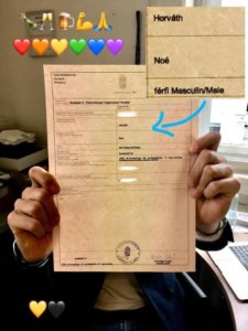 Hivatalosan 2018. február 7-én kaptam meg a Noé nevet. Ekkor állították ki az új születési anyakönyvi kivonatomat, amin már az szerepelt, hogy férfi vagyok és Noé. Természetesen a barátaim és a munkatársaim már sokkal régebb óta, körülbelül 2 éve Noénak szólítanak. Már el sem tudom képzelni, hogy valaki azt mondja nekem, hogy Noémi.
